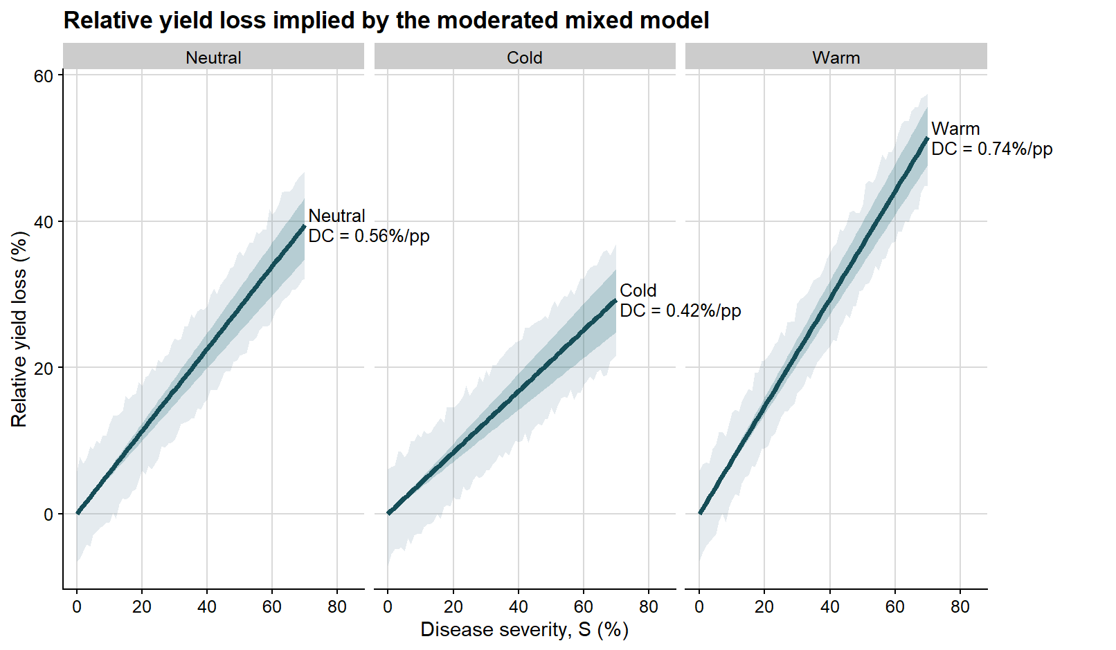 In a future post, I can extend this discussion by moving from linear damage functions to more specialized topics such as relative yield loss, nonlinear disease-response relationships, and the integration of yield loss models into economic decision frameworks.